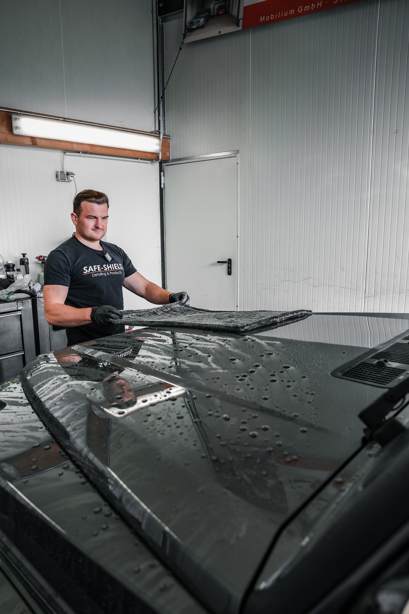 Die spezielle Faserdichte von 1600 GSM nimmt große Wassermengen in einem Zug auf, schont dabei den Lack und spart dir Zeit.