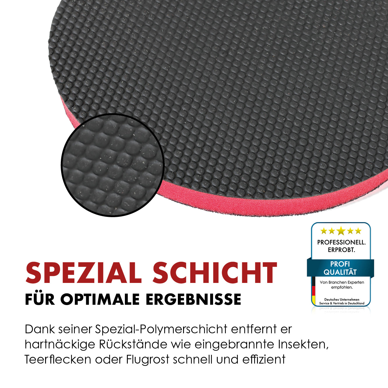 The Clay Disc's special polymer coating removes even the most stubborn residues like tar, rust, or insect remains – completely without harsh chemicals . It glides smoothly over the surface and cleans the paintwork deeply, safely, and gently .